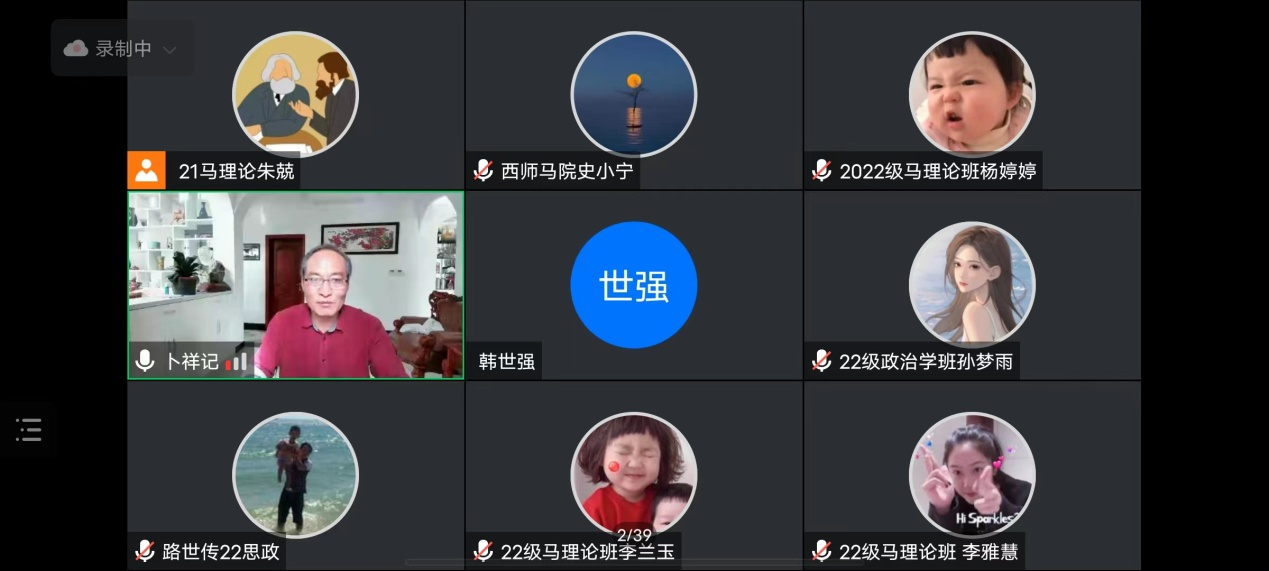 10月14日上午,应威尼斯7798cc邀请,上海交通大学卜祥记教授线上为威尼斯官网师生作了题为《<资本论>唯物史观性质》的学术讲座,此次讲座由威尼斯7798cc院长史小宁教授主持。
